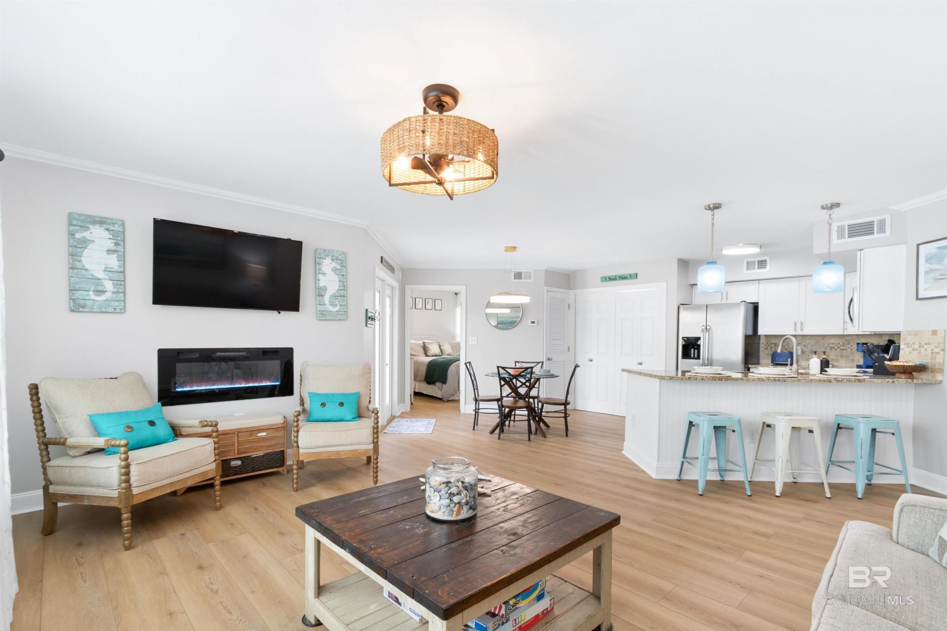 Gorgeous 2 bedroom, 2 bathroom 1040 sq. ft. first floor unit with covered balcony at Colony Club at Drakes Landing! This could be your home-away-from-home, or a FULLY furnished, turnkey investment, or a combination that pays for itself. At only a few miles from the sugar-like sands of Gulf Shores it is just outside all the traffic and commotion. D-5 is fabulous with an updated and modern interior featuring a split floor plan, shaker cabinets, stainless steel appliances, new luxury vinyl plank flooring (2026), new light fixtures (2026), fresh paint throughout (2026), a new water heater (2025). Pull out queen sofa in living room will accommodate...read more